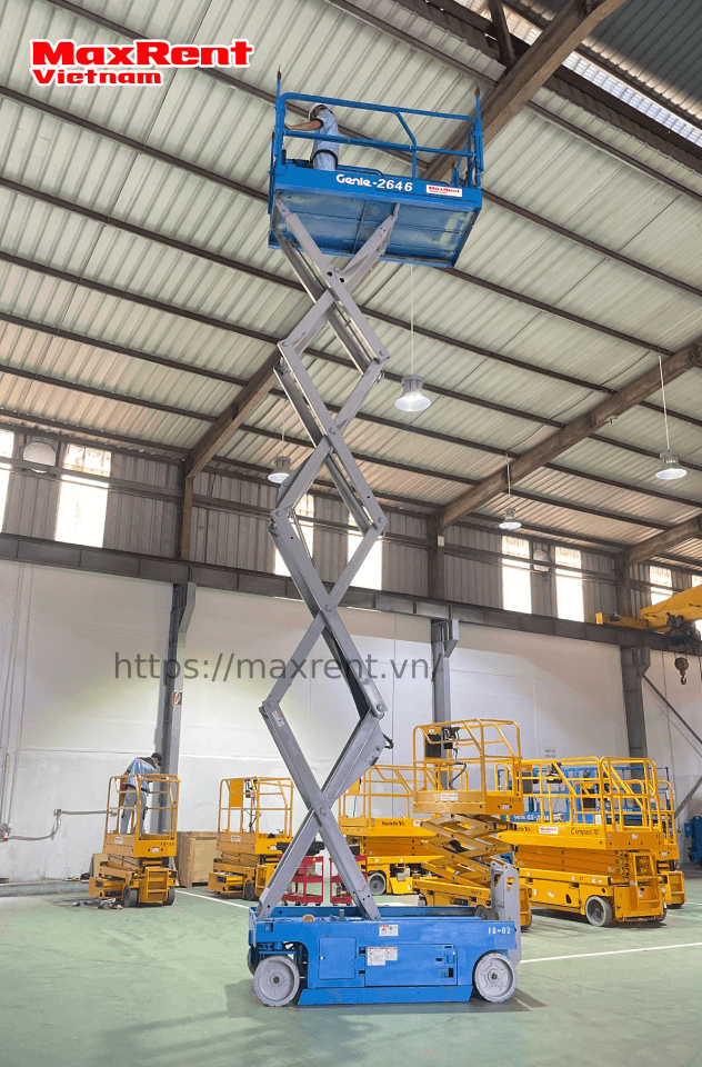 SCISSOR LIFT is a sort of vertical lifting manlift with an average height of 5 m to 20 m with the main function of lifting people up to reach the working position, replacing many other equipment such as scaffolding, ladders, etc.